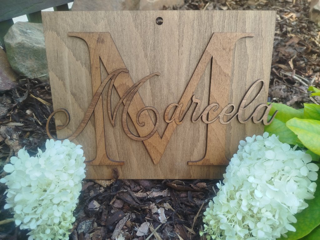 Cedule se jménem je precizně laserově řezaná na CO₂ laseru z kvalitního dřevěného materiálu. Každý kus má přirozené znaky dřeva, díky čemuž je každý výrobek originální a jedinečný.