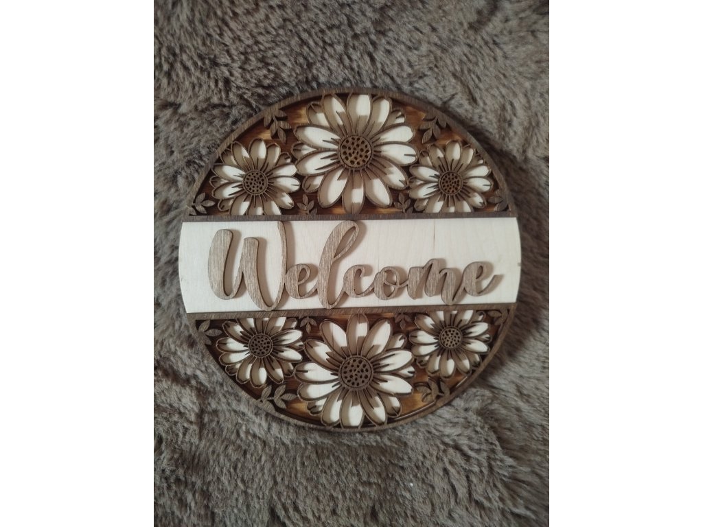 Dekorační cedule Welcome je precizně laserově řezaná a gravírovaná na CO₂ laseru z kvalitního dřevěného materiálu. Každý kus má přirozené znaky dřeva, díky čemuž je každý výrobek originální a jedinečný.